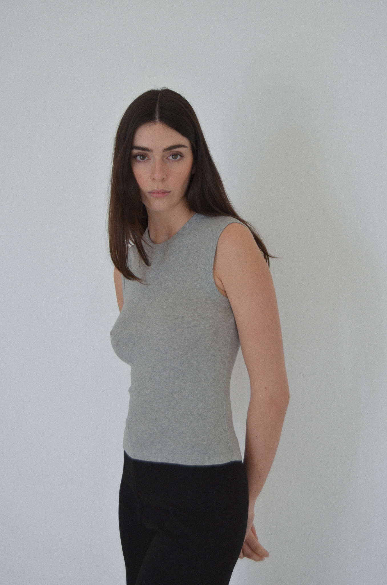 A brand heritage in our new Autumn Winter release Grey melange color. A classic fitted tanktop with a flattering round crewneck. June tanktop is made from a soft organic cotton fabric and features a subtle monogram embroidery in the neck. Responsibly manufactured in our own atelier Turkey.