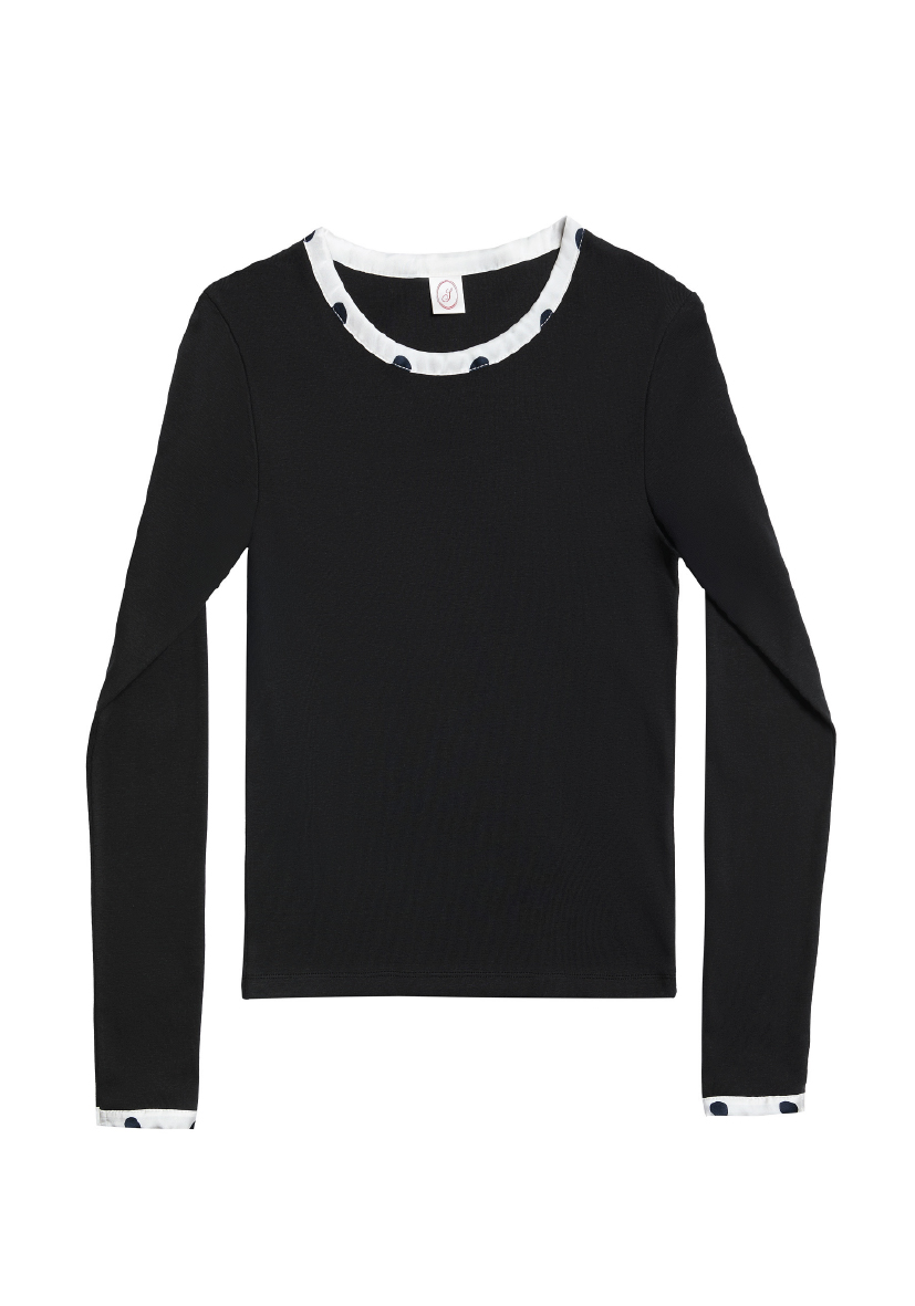 Noel longsleeve is our classic fit longsleeved blouse, manufactured from an organic cotton rib, trimmed with a pure polka-dot printed silk satin for ultimate comfort and quality. Manufactured in our own atelier in Izmir, Turkey.